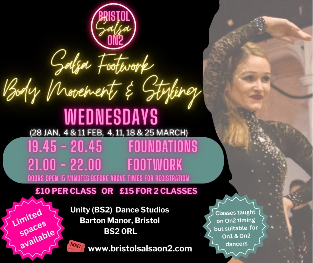 For our Salsa On2 Foundations & Footwork classes on Wednesdays ONLY.